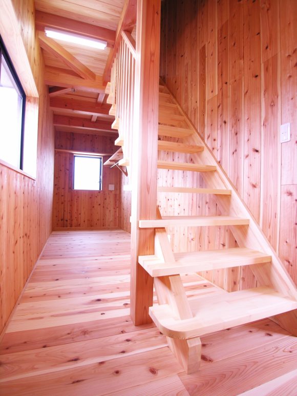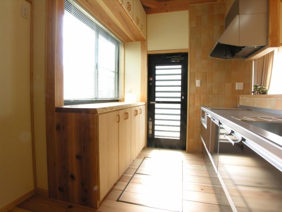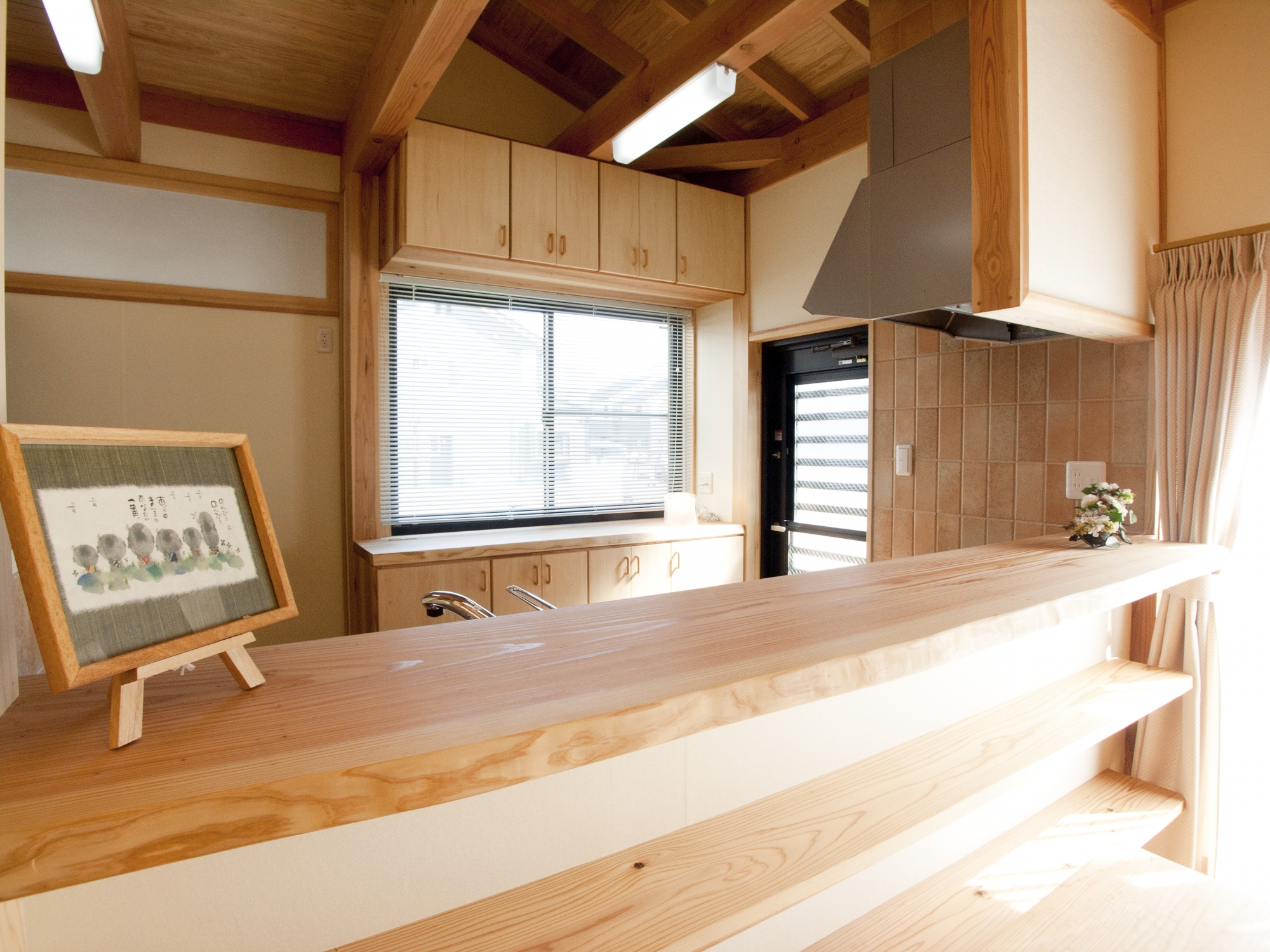配膳台を兼ねた皮付きのカウンターをつけました。