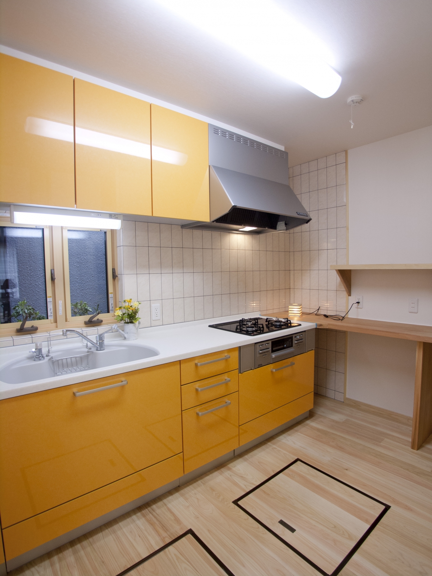 床は桧の無垢板に撥水性のある自然塗料を塗りました。