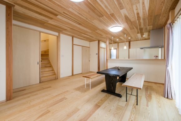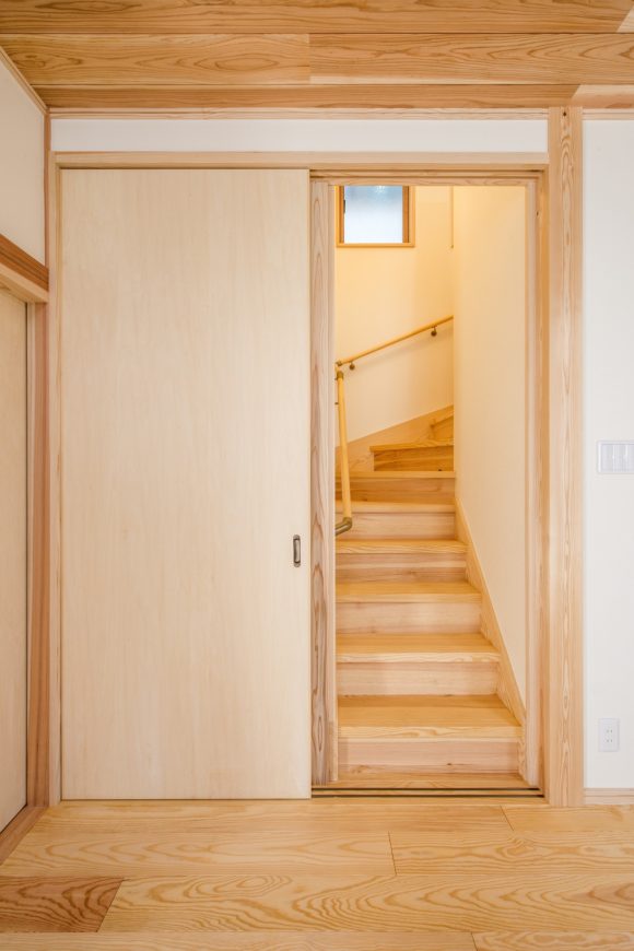 LDKから行ける階段には引き違い戸をつけました。