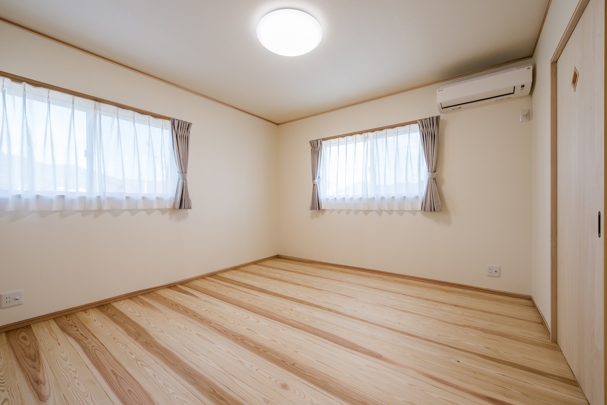 床島根県産の杉の15mmの幅広の床板を張りました。