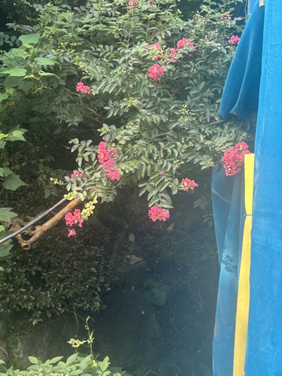 庭に百日紅が咲いてます。 自宅を建て替え中です。 紫陽花は前には咲いてましたが 解体工事の時に伐採しました。 百日紅(サルスベリ)と千日紅(センニチコウ)は、どちらも開花期間が長いことからその名がついていますが、全く異なる植物です。 百日紅(サルスベリ) * 植物の種類: ミソハギ科の**落葉高木(木)**です。 * 特徴: * 開花期間: 夏から秋にかけて、およそ100日間もの長い期間にわたって、次々と花を咲かせます。 * 花: 花びらがちりめん状に縮れていて、レースのようなフリルが特徴です。色は、赤、ピンク、白、紫などがあります。 * 幹: 樹皮が薄く剥がれて、つるつるとした滑らかな幹肌が特徴です。「猿も滑って落ちる」という例えから、サルスベリという名前がつきました。 * 用途: 庭木や街路樹としてよく植えられています。 千日紅(センニチコウ) * 植物の種類: ヒユ科の**一年草(草)**です。 * 特徴: * 開花期間: 春から秋にかけて長期間咲き続けます。「百日紅よりも長く咲く」ことから、千日紅という名前がついたとされています。 * 花: 丸いポンポンのような可愛らしい姿をしていますが、この部分は実は花弁(花びら)ではなく、**苞(ほう)**と呼ばれる葉が変化したものです。本当の花は、この苞の隙間に小さく咲いています。 * ドライフラワー: 乾燥させても色が褪せにくいため、ドライフラワーや仏花としても人気があります。 * 用途: 鉢植えや花壇、寄せ植え、切り花として広く利用されています。 まとめ | | 百日紅(サルスベリ) | 千日紅(センニチコウ) | |---|---|---| | 植物の種類 | 落葉高木(木) | 一年草(草) | | 開花期間 | 約100日 | 千日紅の名のとおり非常に長い | | 花の特徴 | レースのようなフリルのある花びら | 丸いポンポンのような苞(ほう) | | その他 | つるつるした幹肌が特徴 | ドライフラワーにしても色が褪せにくい | 名前は似ていますが、全く異なる植物であることがお分かりいただけたかと思います。![]()