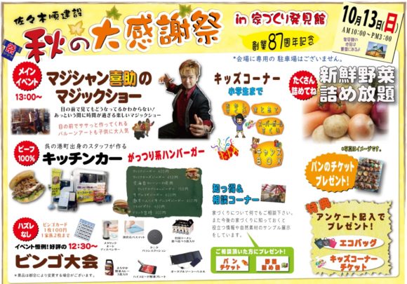 10月13日に家づくり発見館で秋の大感謝祭を開催します。