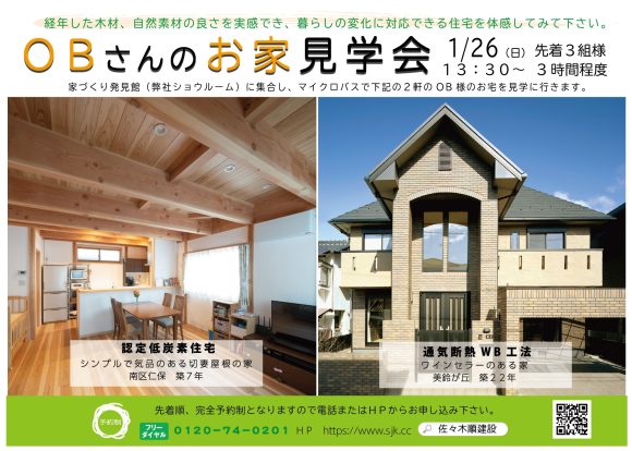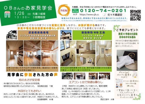 申し込みを終了しました。1月26日 OBさんのお家見学会