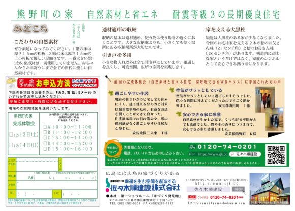 こちらの申込は終了しました。 【開催日時】 2025年12月13日(土)14日(日)予約制 下記の各時間帯に公開&説明を致します。 各開始時間に現場までお越し下さい。 詳細な地図は申し込み後に送付いたします。 A 10:00~11:00 B 11:00~12:00 C 13:00~14:00 D 14:00~15:00 E 15:00~16:00 先着で各日時1組様ずつとなりますのでお早めに申込下さい。 【人数・ご費用】 参加は無料です。 ご家族で貸し切りにできます。 落ち着いた雰囲気の中でご覧いただけます。 【申込み方法】 下記の申し込みフォームから または、通話料無料のフリーダイヤル 0120ー740ー201まで 開催詳細内容 詳細はこちら↓をご覧ください。