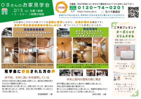 2月15日 OBさんのお家見学会を開催します。