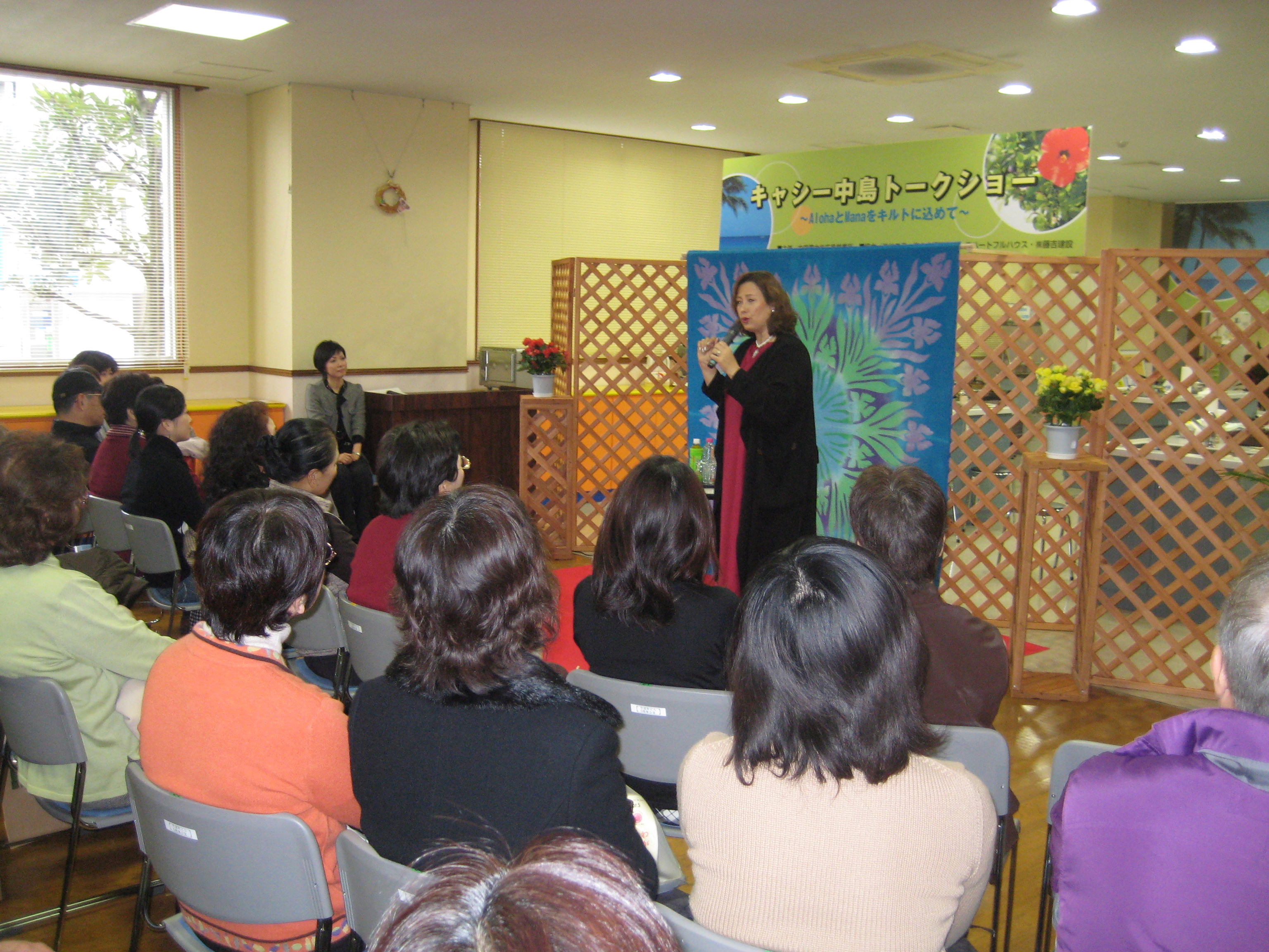 トークの内容は、ハワイアンキルト、ご家族のこと、子育て、富士山のふもとの町にあるご自宅のことと、バラエティーにとんでとても楽しいお話でした(^∀^)。