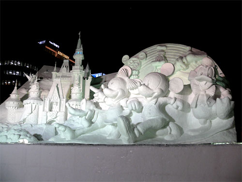 札幌では雪祭りだけでなく、氷祭りも行われていました。広島でいうと平和大通り位の長さの大通りにずらっっと雪のアートがされていて、日本企業・個人そして海外諸国でいろいろ展示していました