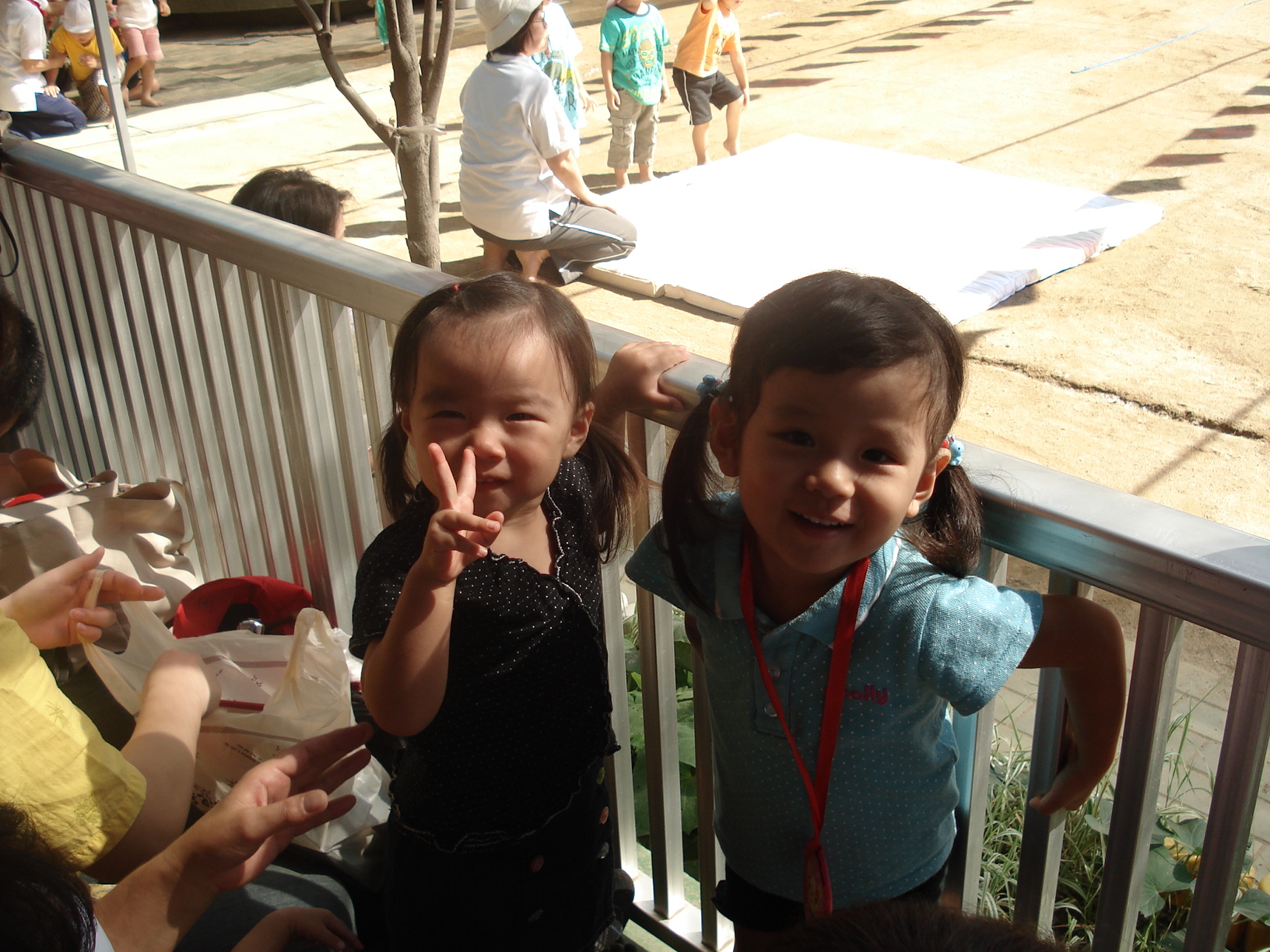 ・・・でしたが園に着き教室で親と離れるときにはも~大変でした。何とか競技は頑張ってくれましたがキョロキョロ一生懸命応援席にいる僕達の姿を探していました。ほのぼのいい時間でした。