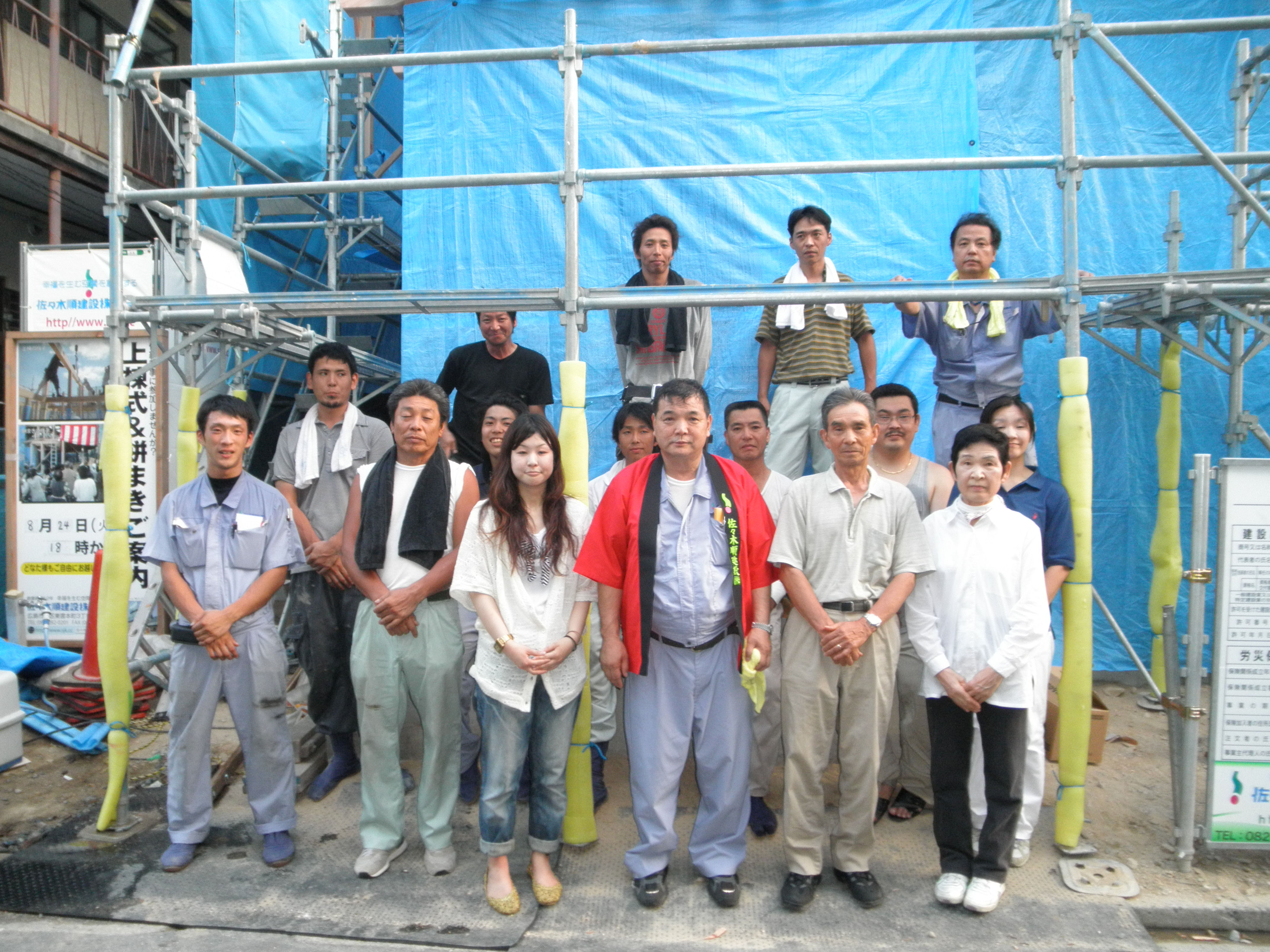 棟が上がる頃合いを見て建前を大工さんと一緒になって
