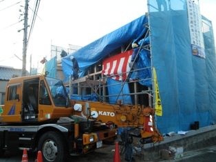 お施主様のW様家族に上へ上がってもらい、お餅を投げてもらいました。