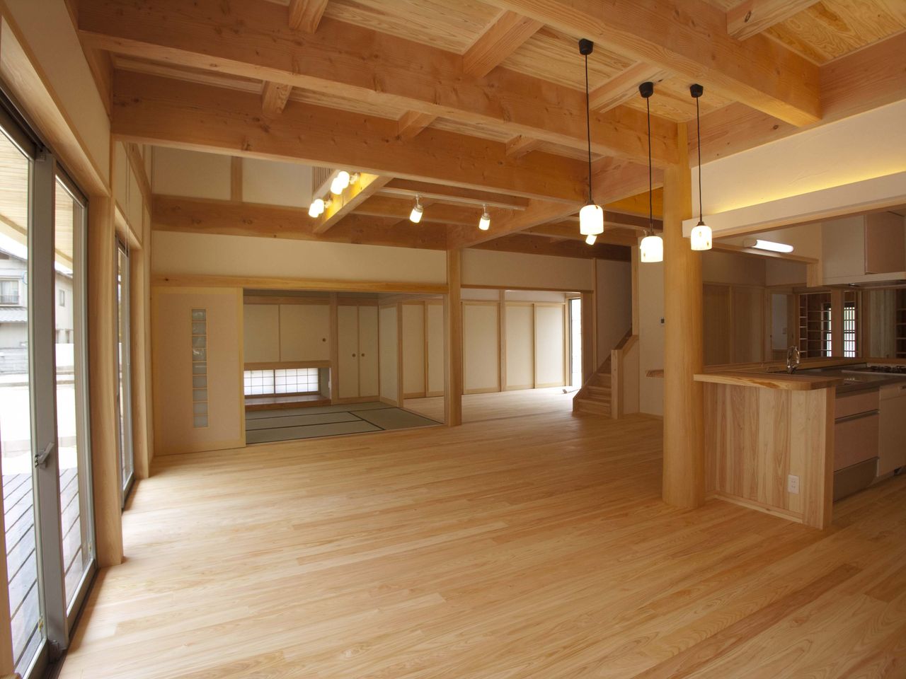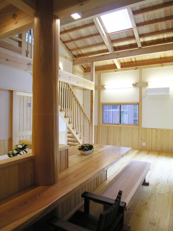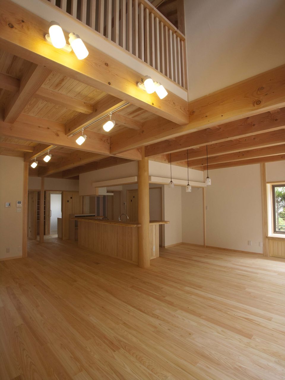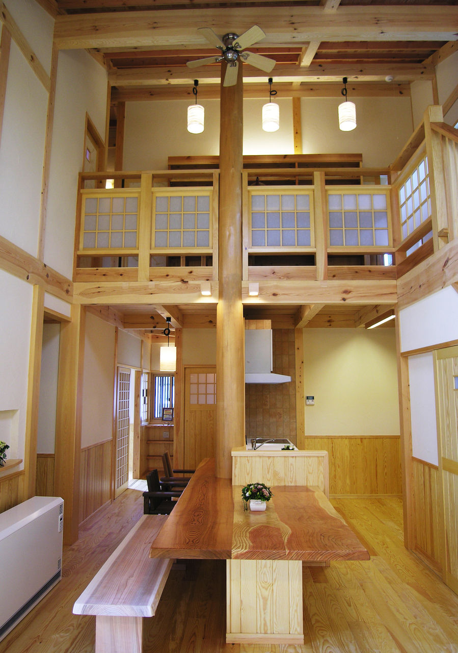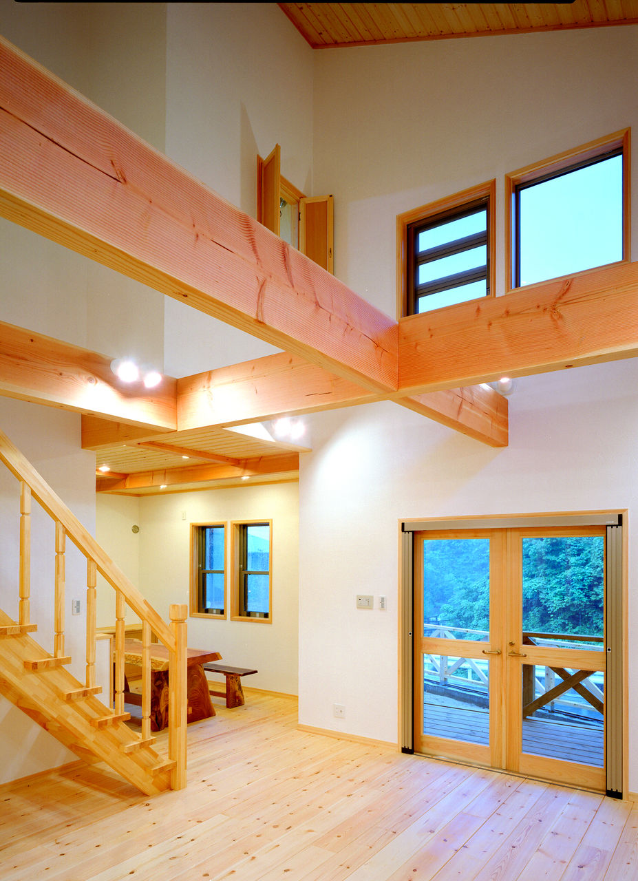 構造躯体の木造軸組が、化粧材として表面に露出しています。