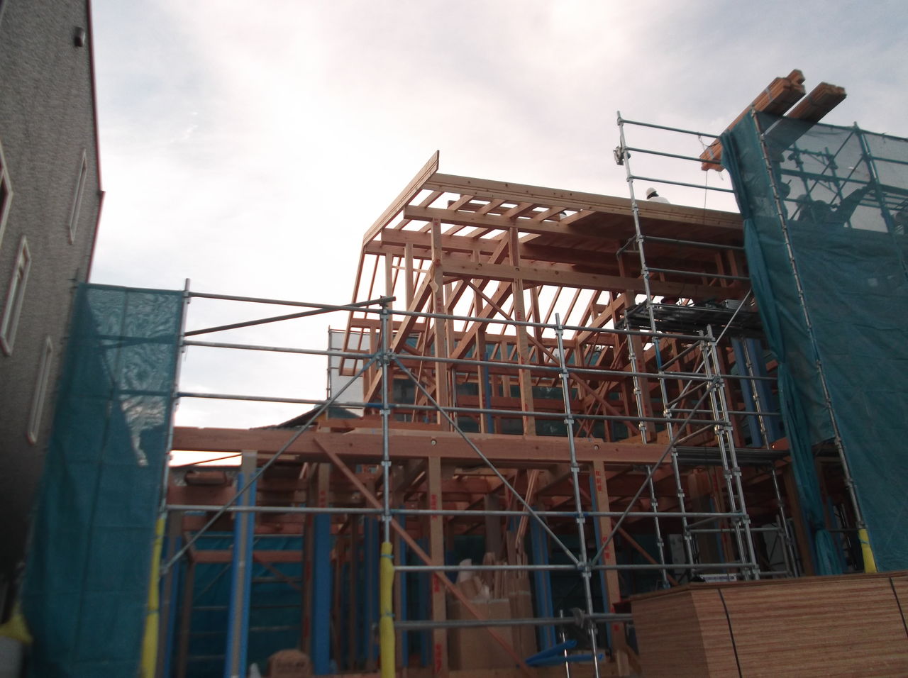 夕方行くと、屋根の天井仕上げまで行っていました。