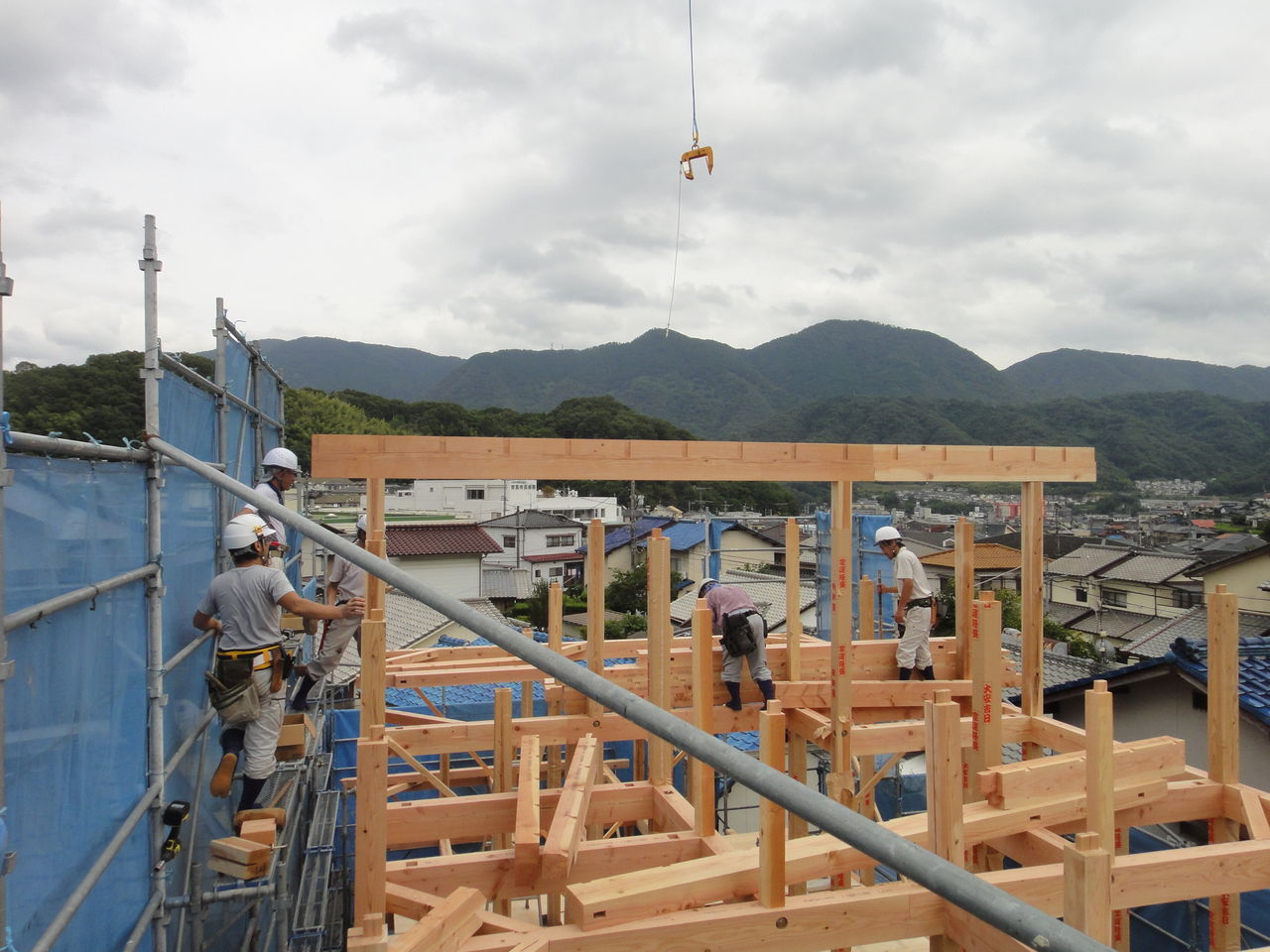 【お父さん柱とお母さん柱でしっかりと支える子育て世代の家】です。