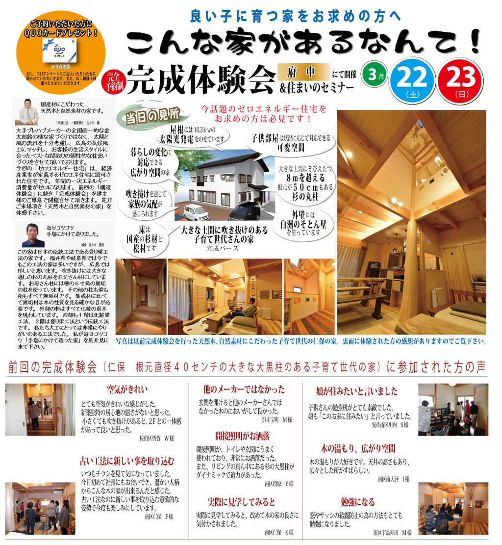 さて、今回も広島でエコの家、自然住宅の家づくりを体験できる