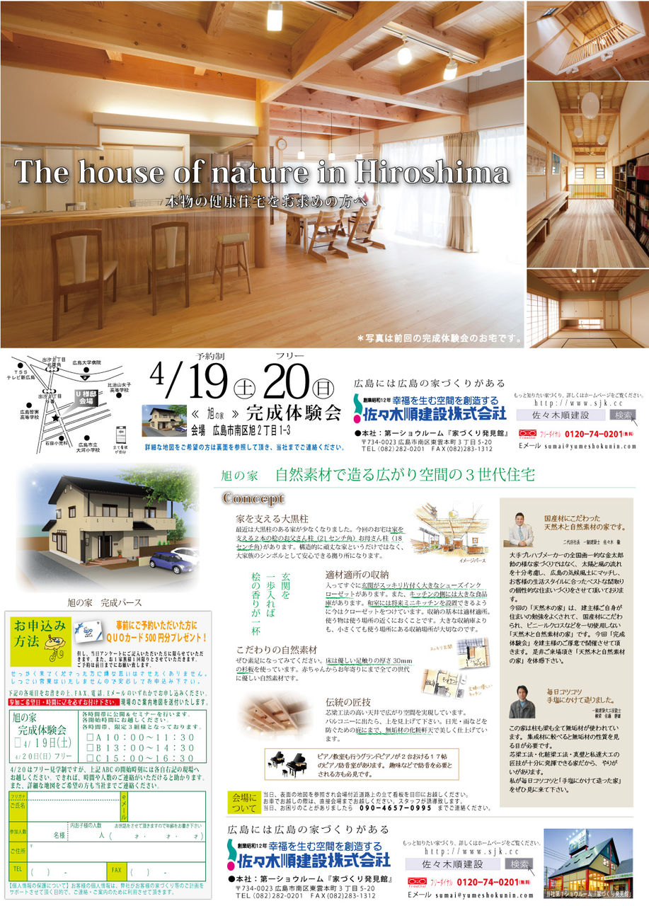 土曜日に引き続き、4月20日(日)広島でエコの家、