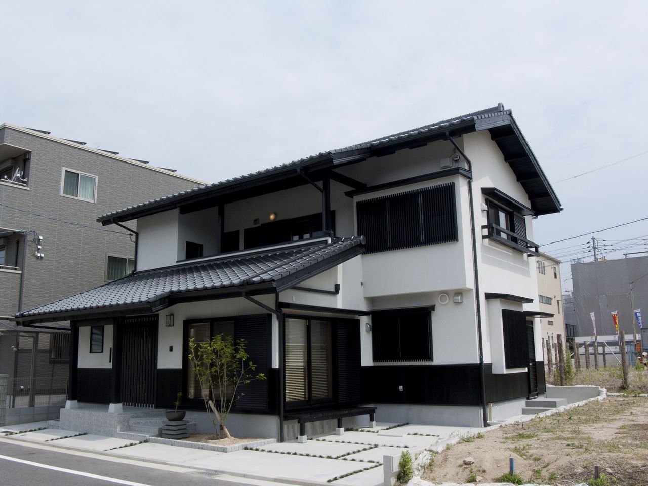 こちらは『無垢の桧板の腰壁のあるモノトーンの和の家』です。