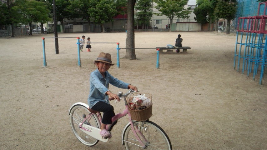 得意げに公園の中を自転車で乗りまわします。