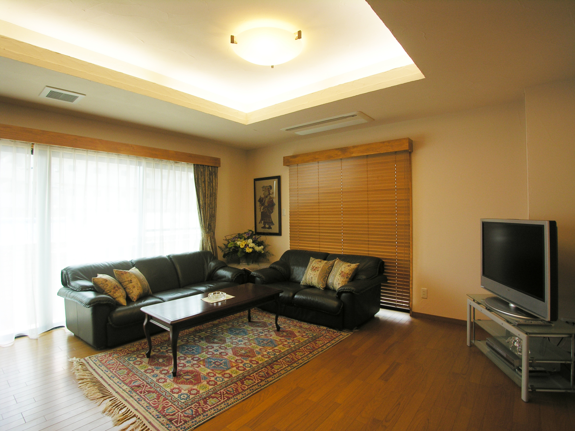 掘りこみ天井に蛍光灯を並べて間接照明にしました。