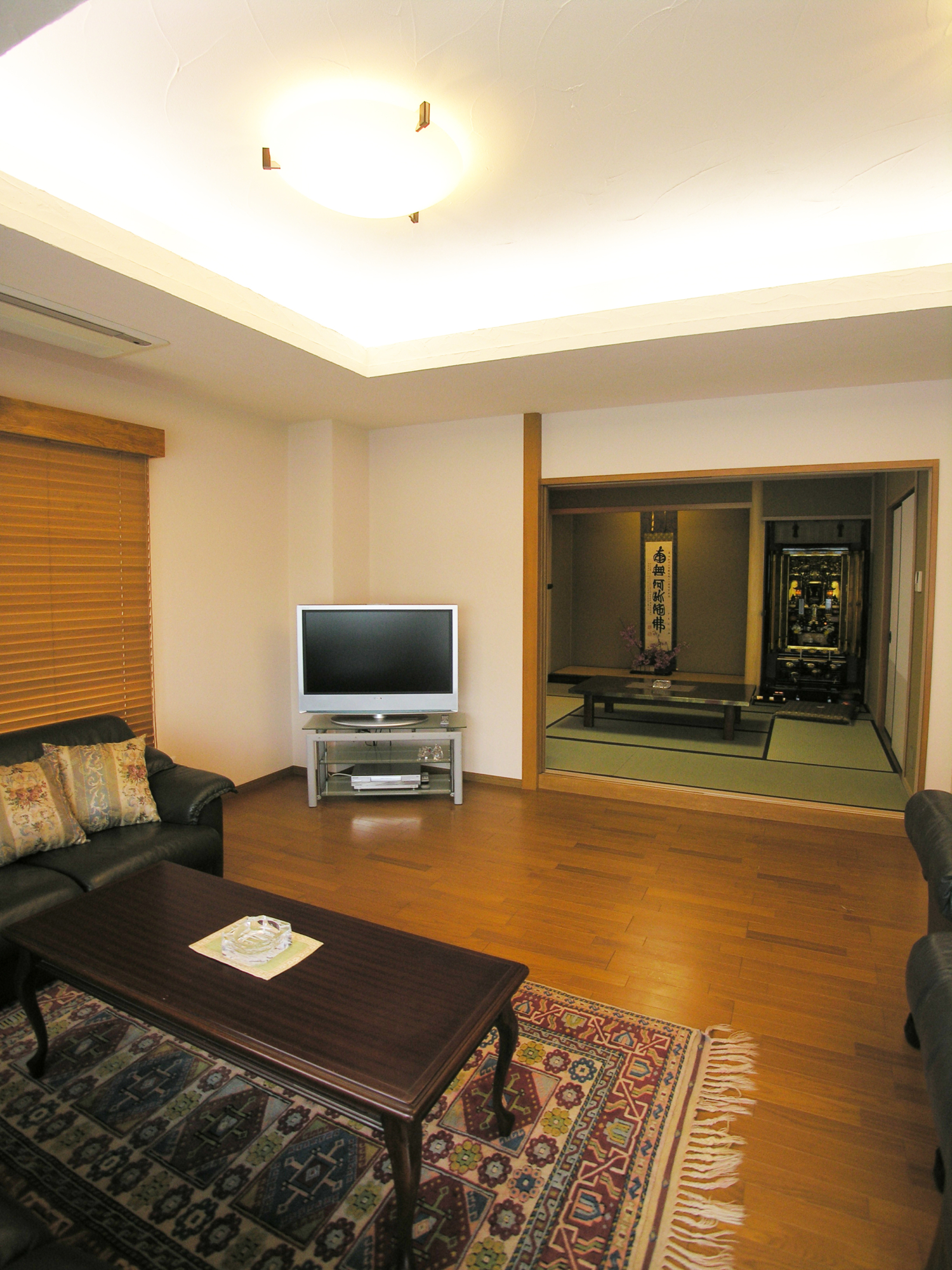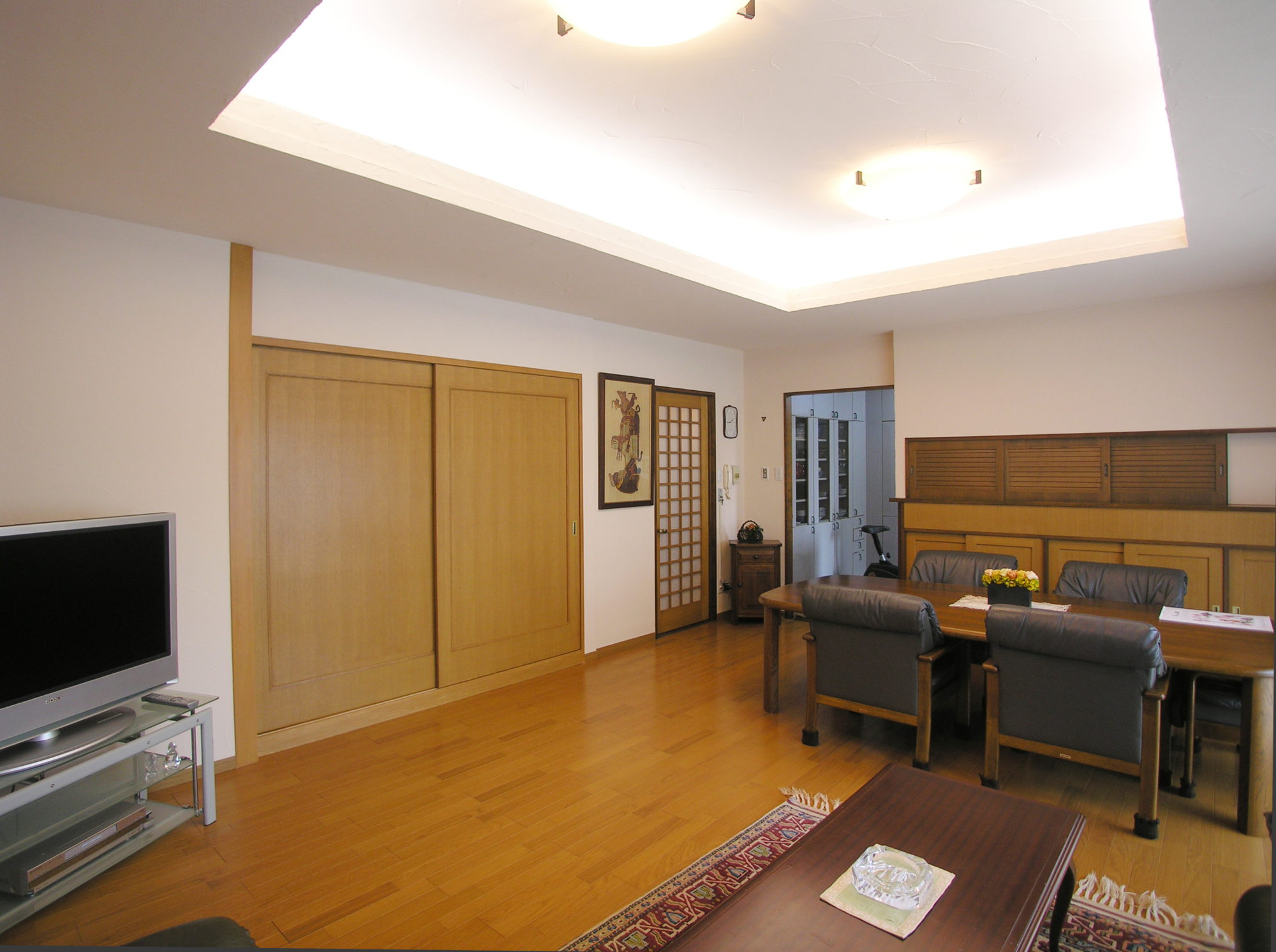 リビングと和室戸の2枚戸は引き込み戸にして開けると二間続きの広がりが出ました。