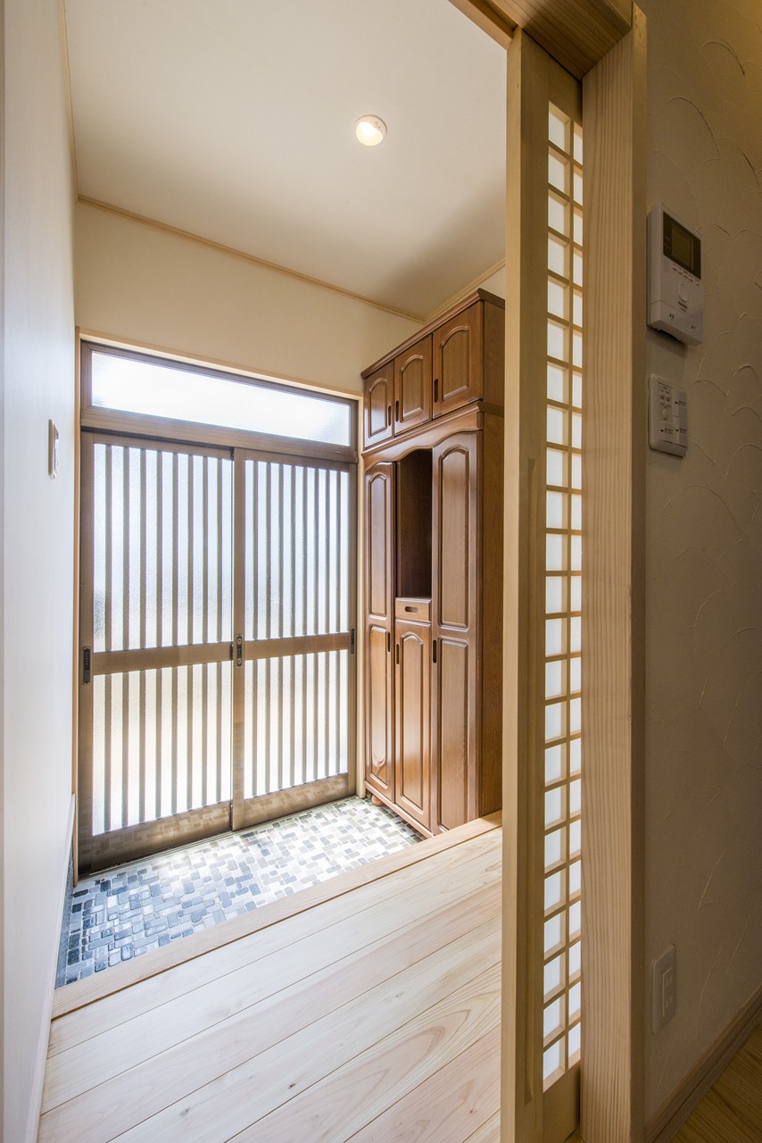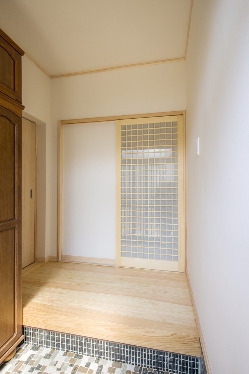 床には桧板・壁には珪藻土・天井には越前和紙の壁紙と自然素材仕様にしました。