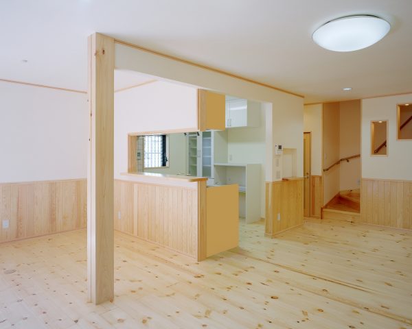 一部増築したLDKです。部屋の中ほどに桧の6寸角(180ミリ角)の無垢の大黒柱を配置しました。