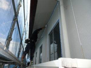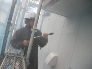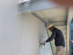 外壁の中塗をしてます。もう1回上塗をします。