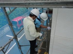 本部教会の担当者の方2名、A設計の所長さんに足場解体前に検査をして頂きました。