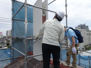 足場を組まないと視察出来ない屋根を重点的に