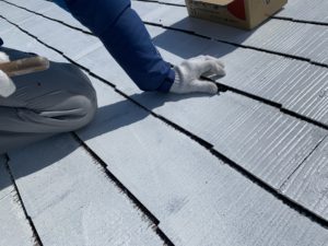 屋根カラーベスト地の下地処理材(マイルドシーラーエポ)塗装状況