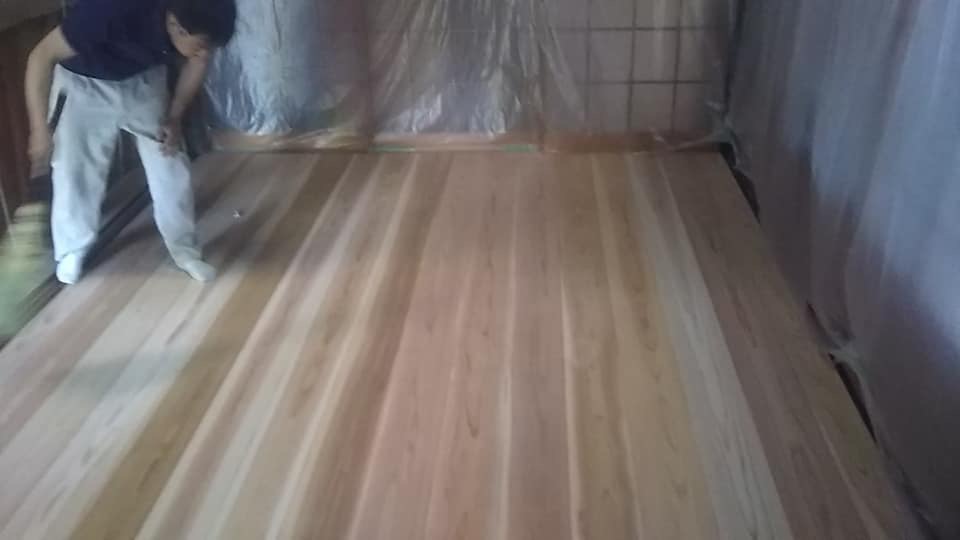 床材は徳島産の杉の厚さ30ミリの上小節を張りました。