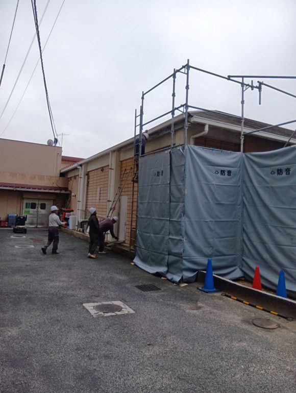 外部にはご近所への騒音に配慮して防音シートを