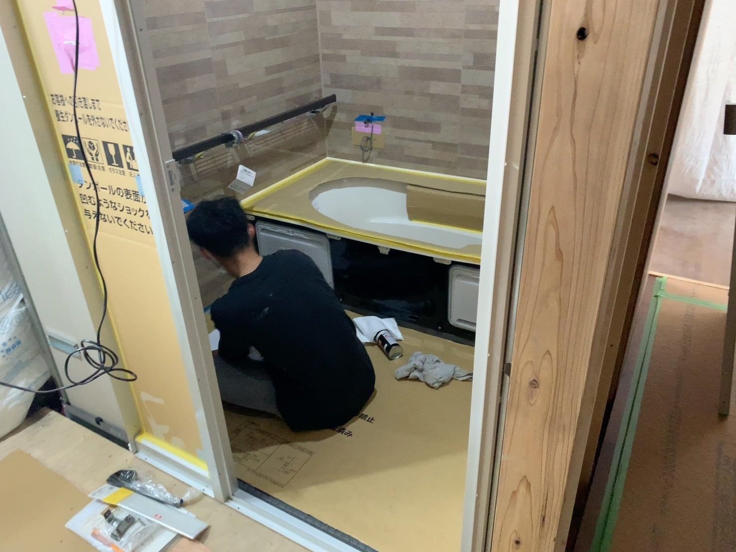 システムバスの取り付け、 リビングの内装工事をやりました。