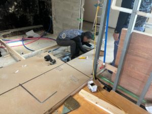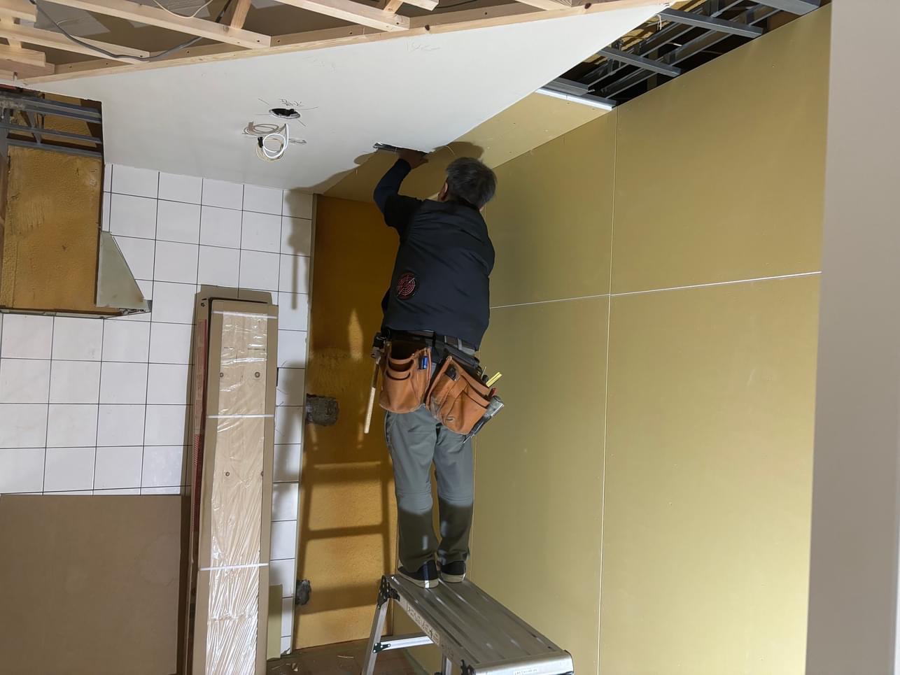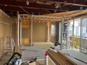 本日も佐伯区海老園のF様の改装工事の壁の下地組みや