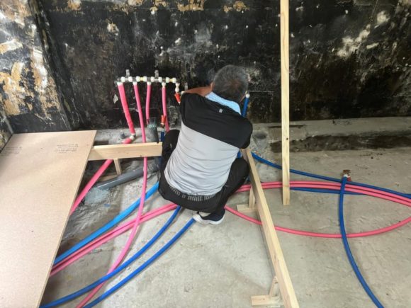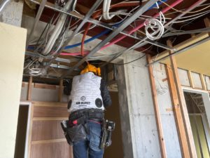 本日より佐伯区海老園のF様邸の改装工事に入ってます。 アルマ建築設計さんが設計管理です。 大工さんがフリーフロアー。 電気,設備、換気も先行配管に入りました。