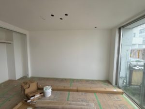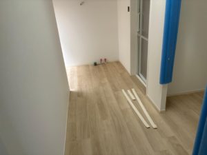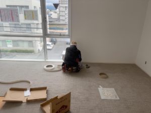 お盆明けから少しは凌ぎやすくなりました。 海老園のF様邸の改装工事また始まりました。 本日は3階の寝室カーペット貼と洗面所のビニールタイル貼りをやっています。