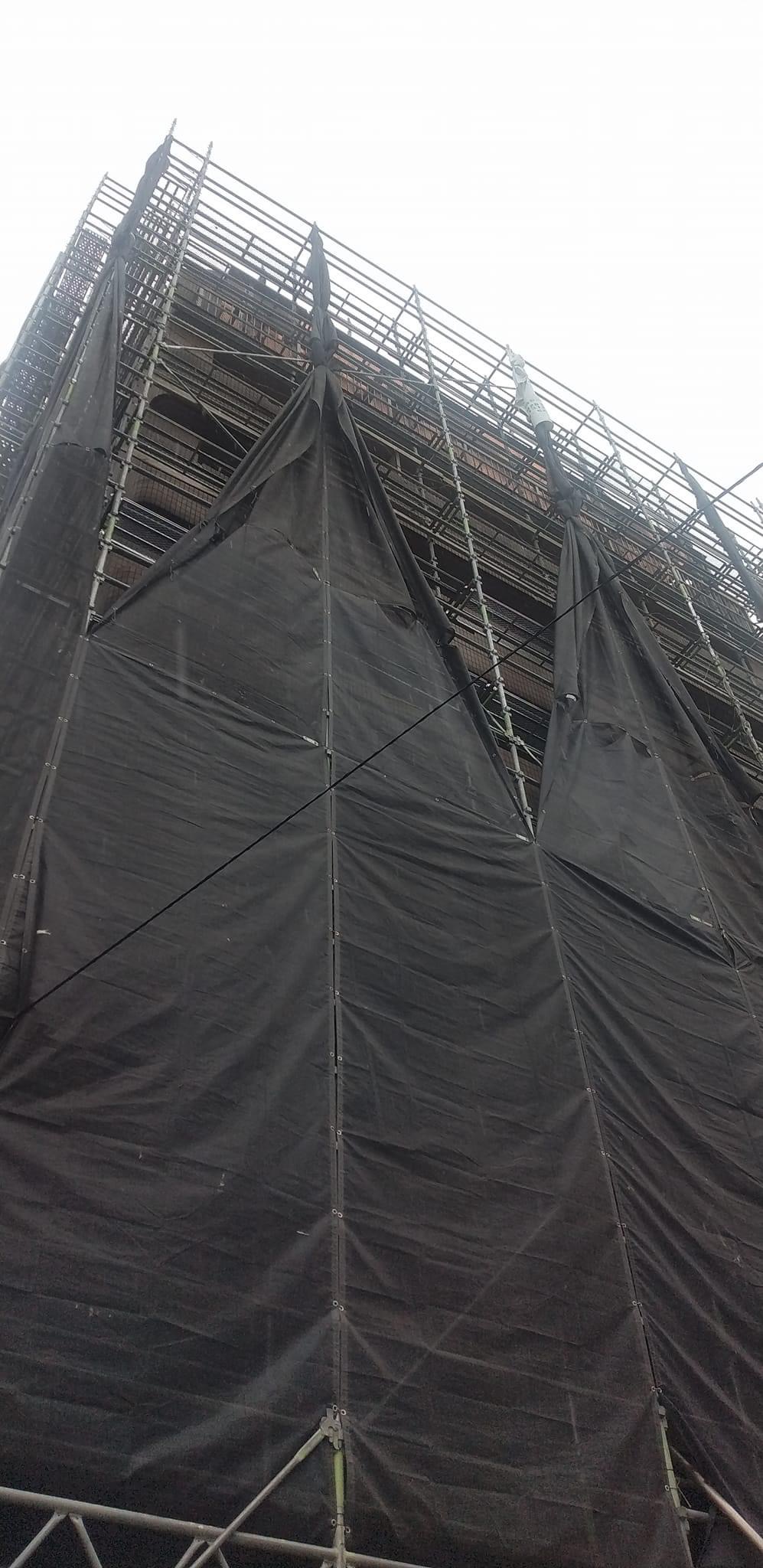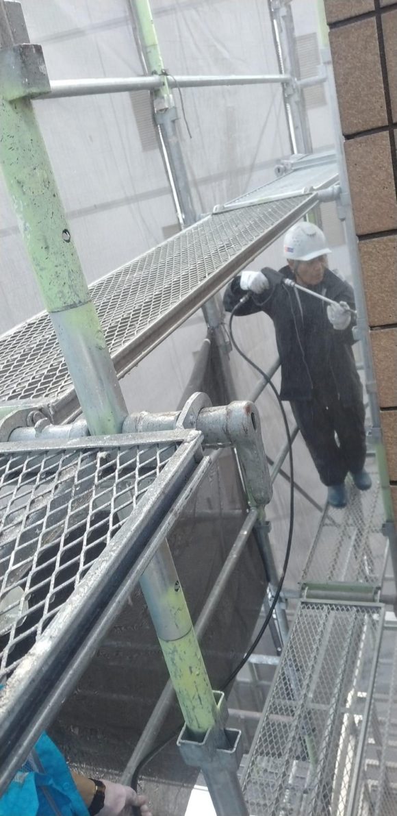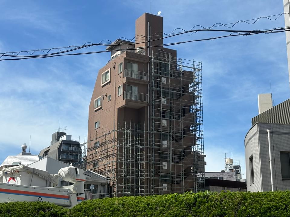 Mビル改装工事は外壁の塗装に入りました。
