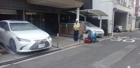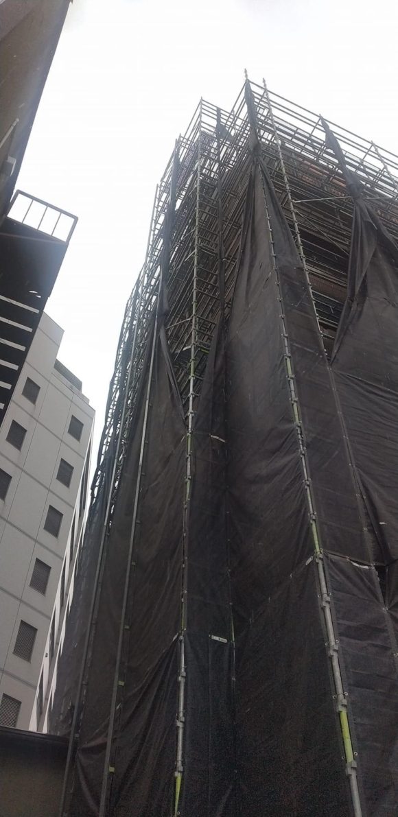 今日で10日間猛暑日が続きます。 広島市中区竹屋町のマトバ3アメニティビルの改修工事は 足場組みも完了して、外部明装工事に入っております。![]()