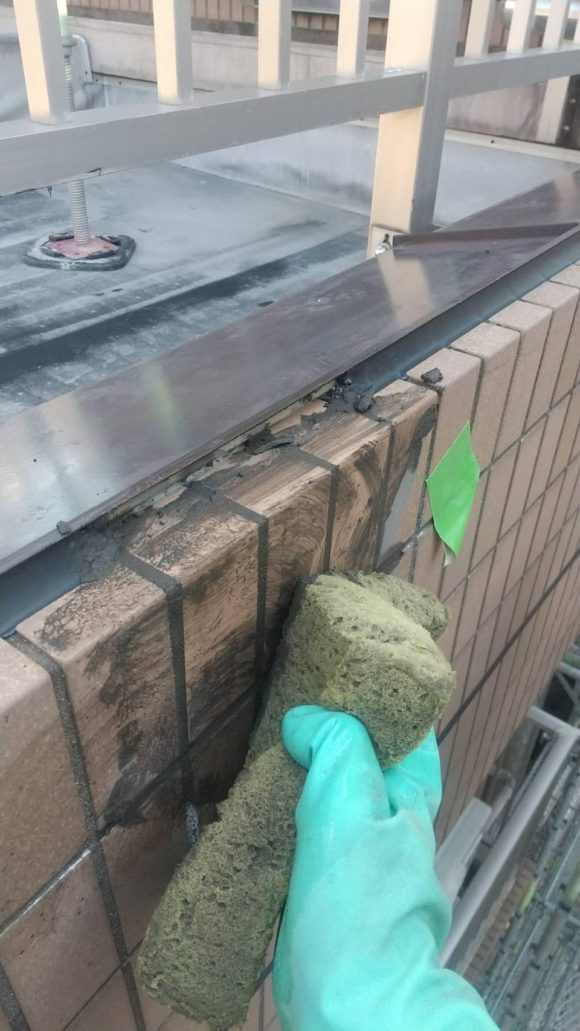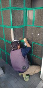 養生のあとタイル部分の塗装をしました。