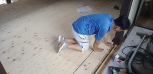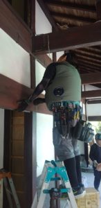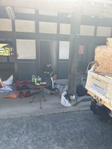 投稿が前後しましたが、8月1日より解体工事に入りました。 昔ながらの竹小舞に土壁の伝統工法の旧家です。 電気屋さんも既存の電気配線止めの工事に入りました。