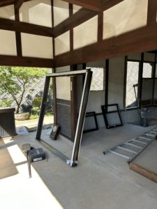 猛暑日が続きます。 大工さんは外部のサッシを取り付けています。
