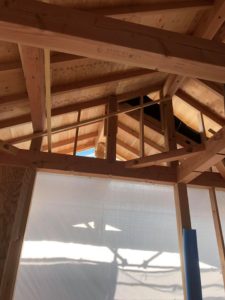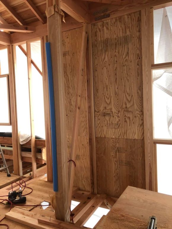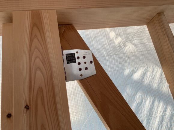 内部の工事は、中間検査に向けて金物や筋違いの取付け、耐力壁の施工をしました。