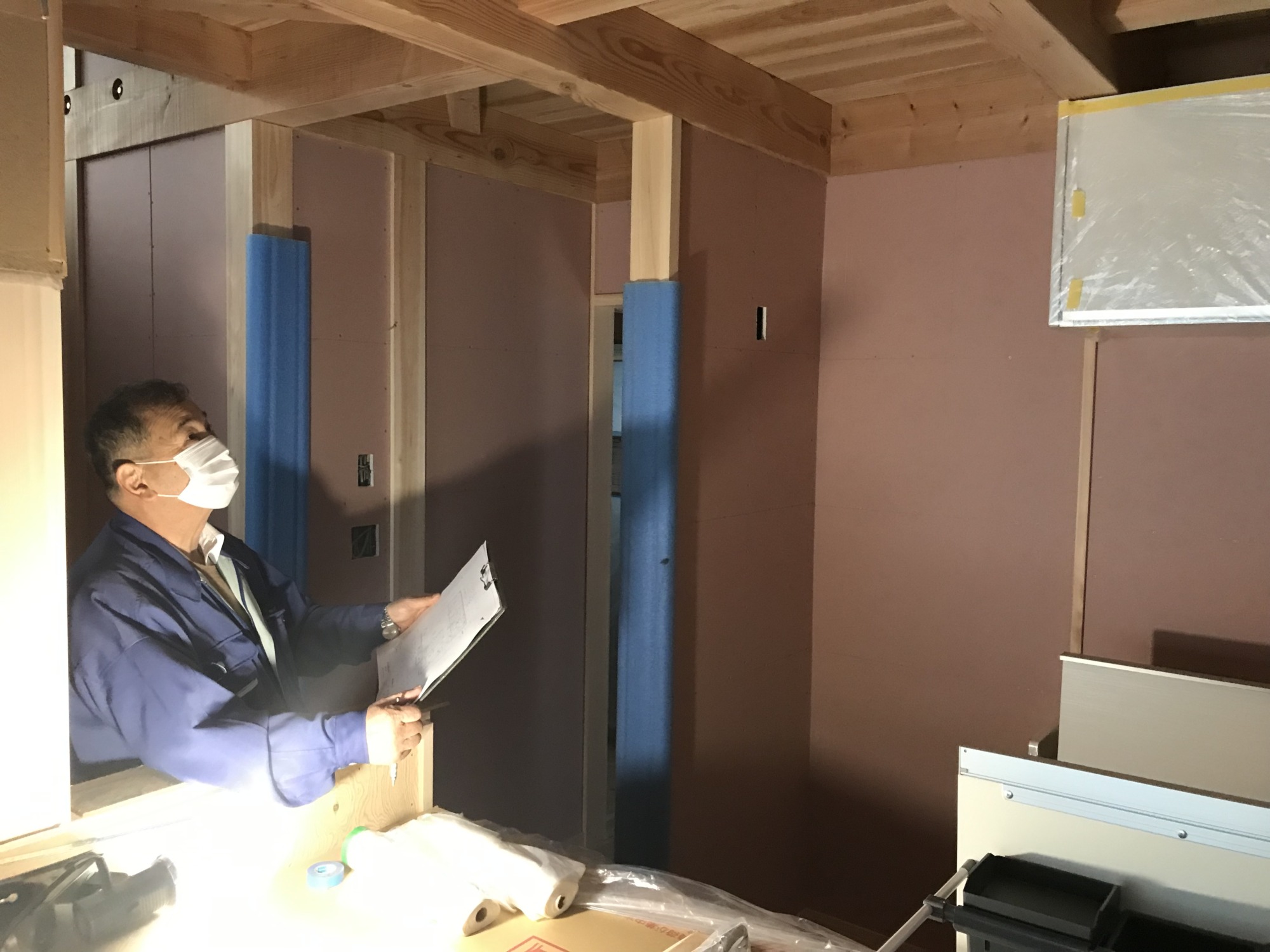 今日は木工事の社内検査をしました。 中塚棟梁丁寧な仕事して貰っています。