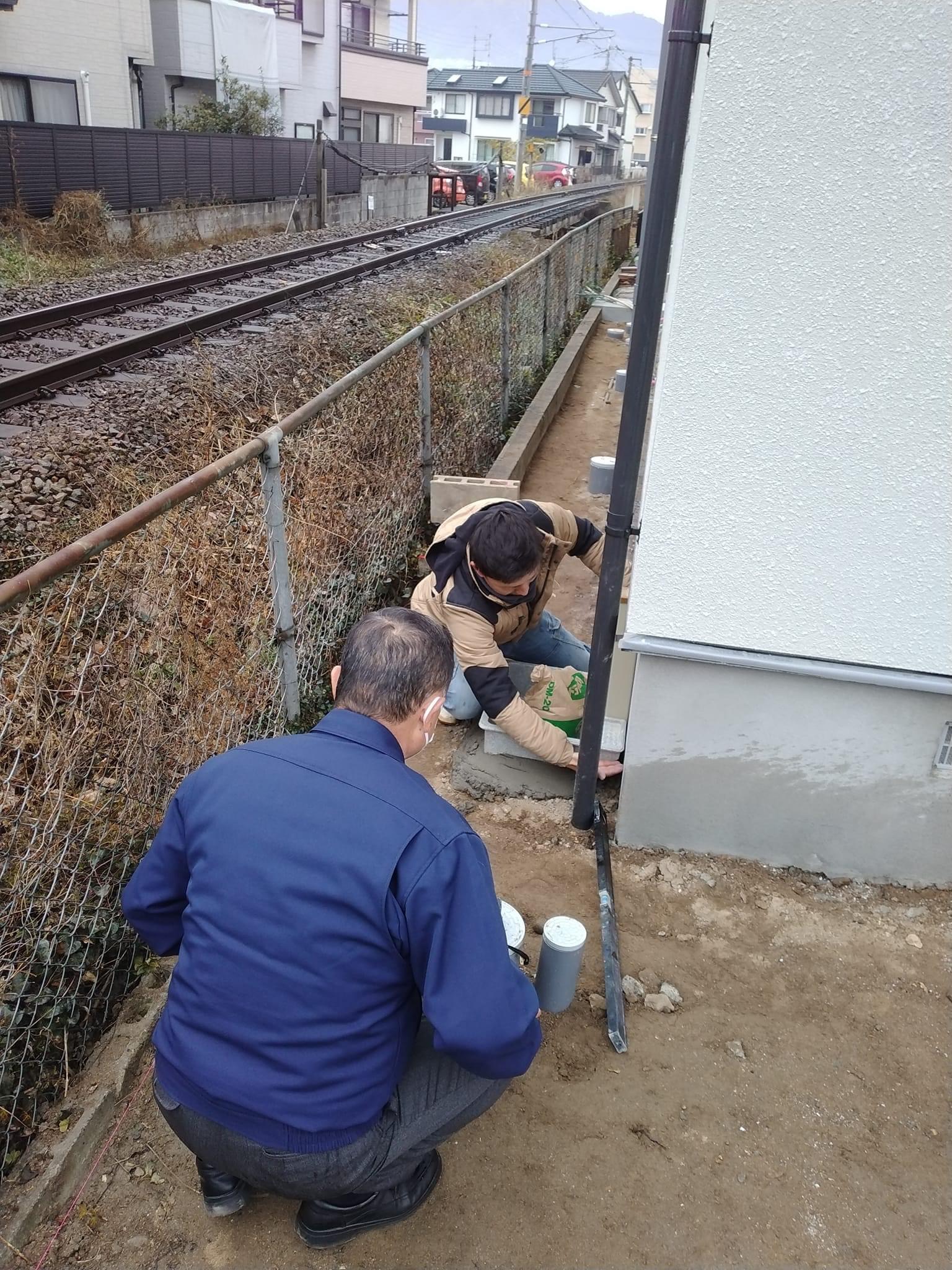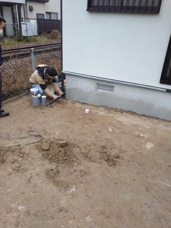 本日は外構工事に入る為にGLの墨出しを行いました。 駐車場の土間打ちは1月14日を予定しています。