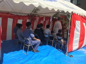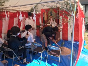 本日晴天の中、中須のN様邸の地鎮祭が仁保姫神社さんの渡部宮司さんの手により
