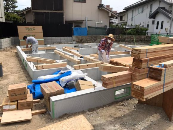 仁保のI様邸は今週の土曜日の上棟に向けて大工さんが