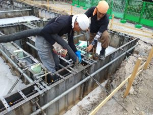 ホールダウン金物アンカーボルト位置の確認朝一で行います。