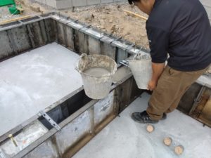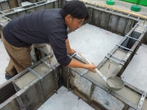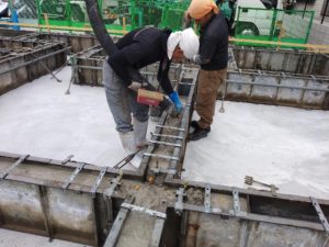 水で練って流し込むだけで、平滑な天端仕上げができます。