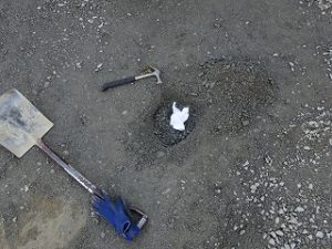 これは、沈め物と言いまして工事が無事に終わる様に祈願した物で、実は地鎮祭の時に頂くものです。 これで、安心です。