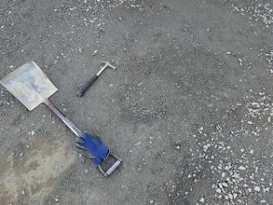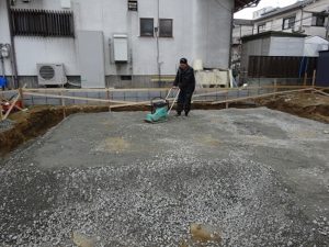 掘削の次は、採石敷きです。十分に転圧して・・・