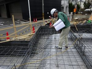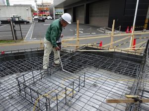 鉄筋組み立ても順調に進んでいます。鉄筋組み立てが終わったら、第三者機関による配筋検査です。
